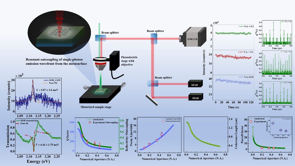 - A precise tuning property for the single-photon outcoupling obtained by the objective numerical aperture. It provides arbitrary control over the scattering response, including the resonance linewidth, outcoupling efficiency, and Purcell factor.